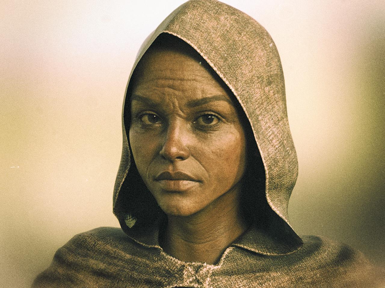 Te character is a mix, 50% P3D Mia HD for Genesis 9 | Daz 3D and Neanderthal 9 Female Shape Add-On | Daz 3D. Some post using NIK filters in Paint Shop Pro 21