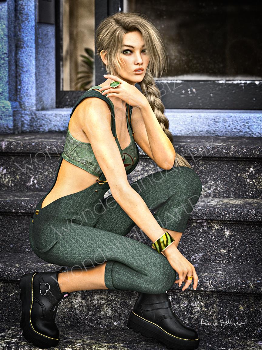 This started out as MSO Alba for G9, but as gorgeous as she is, the most fun I have with this is creating my own morphs and post work, so this really isn't the character. Everything in this is new, the overalls for G3, the hair, shoes and top from other new purchases, the NY tenements I already had though.I usually do more stylized work, now I'm going for gritty realism lol. It was fully rendered but I added in film grain later.