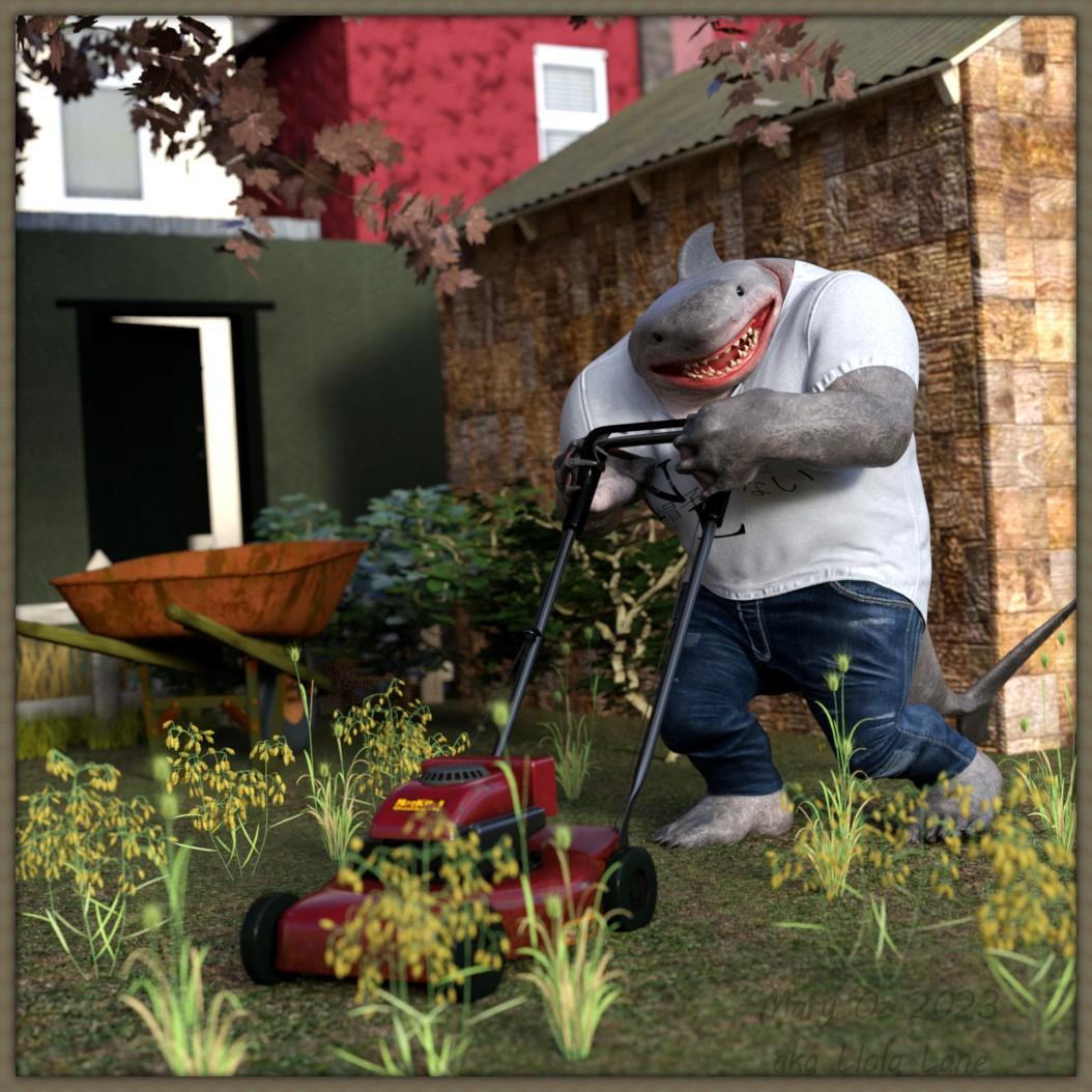 Jawsome may be a villian from 9-5 weekdays... but on the weekends he's just like every other Joe... Yard work! lol