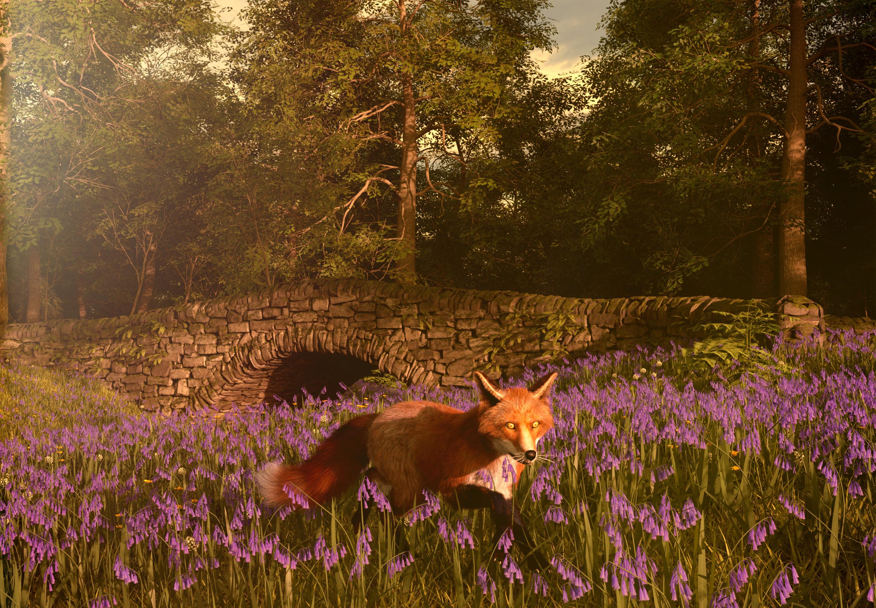 Having said that, I've been busy this month, so there wasn't much rendering and no crazy buying stuff (trying to budget my money T.T ), but I got a few things (ok, this might be more than a few), and I especially enjoyed browsing legacy section, finding gems for $1-2. They also prompted me to finally figure out how to use the LAHM plugin to get fur on the older models, so here it is, a quick fox with an addition of Ultrascennery bridge. Since it was a test, I didn't bother much with the bluebells clipping a bit and I did minimal postwork.