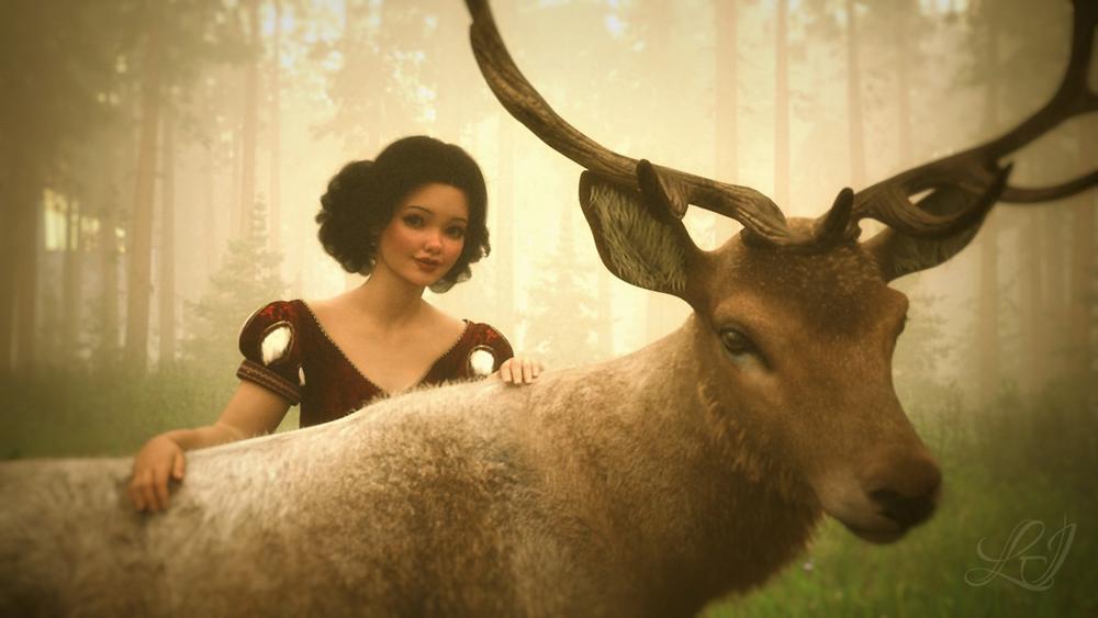 That's a lovely render! I don't know how this character slipped through my radar. What an adorable looking character! I do like that haizy dream-like effect you did too. As Bob Ross was fond of saying, we like "happy accidents"!