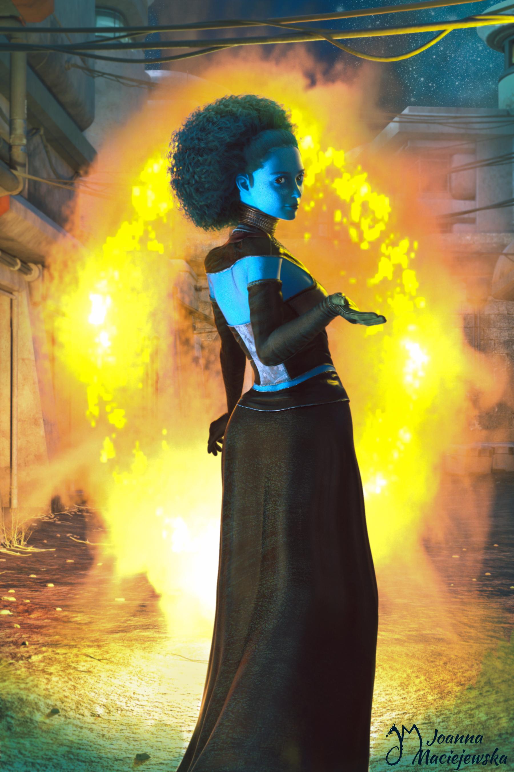 In order to clarify a bit, doing a 'studio' portrait instead of an outdoor one meant I could focus on just Mira and not on adding enough background figures to make the Street of Paris a street of Paris, or at least close enough to a real busy Parisian street (it's one of the most densily populated city in the world) or finding a way to render them in as little spot renders as possible.