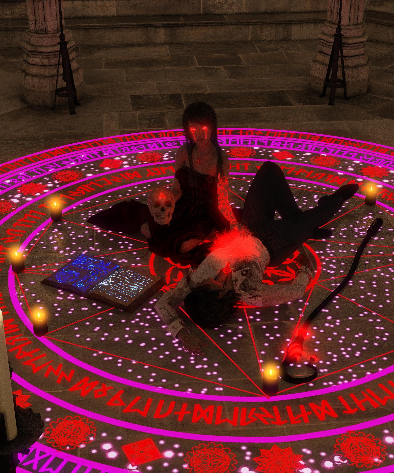 So I made some changes to "Succubus in Chains" The leg section was looking odd but while I did that i decided to use creative angle and some red backlighting using a ghosted primative between the model and the back wall to create a more red hue off the back ground versus the plain stone look..as well as i opened it to two sided so it would backlight the model creating a more dramatic effect off the wings and flooring. I am also wanting to see if i can create a halo under her to give a firery circle to represent a summoning portal being activated...perhaps a very light ring of fire.
