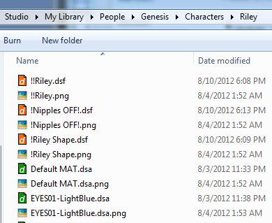 Usually DAZ removes any leading ! or other special characters in folder names, in file names they may be allowed if they are being used to order the files (to make sure a base setting is first in the folder, with options later, as may well be the case with Riley if it's the file and not the folder that has the !s).