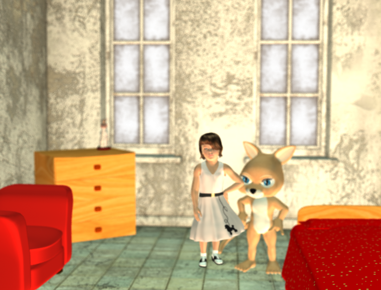 Here is my WIP Lil Miss Badness I got the grainyness figured out but now it is blury so got to figure out what to do about that now. I used a premade lighting called Interior lighting and one camera so I think that may be the problem I am going to try again and add another camera to see if it fixes it!