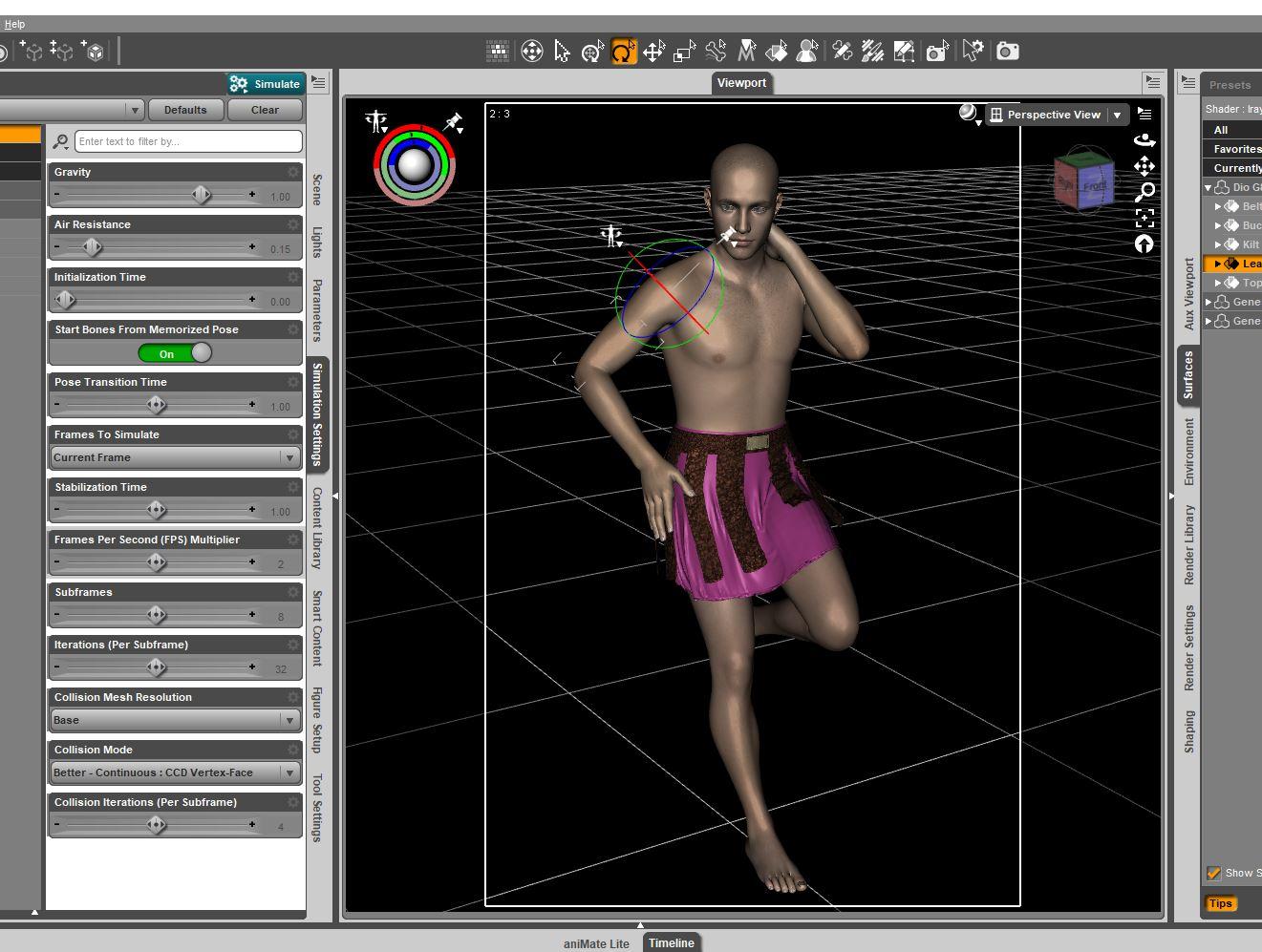 There is a slight issue in the DForce simulation of the fabric of the war kilt near the bottom hem as that curled-in row of polygons attempts to drape with the DForce calculations
