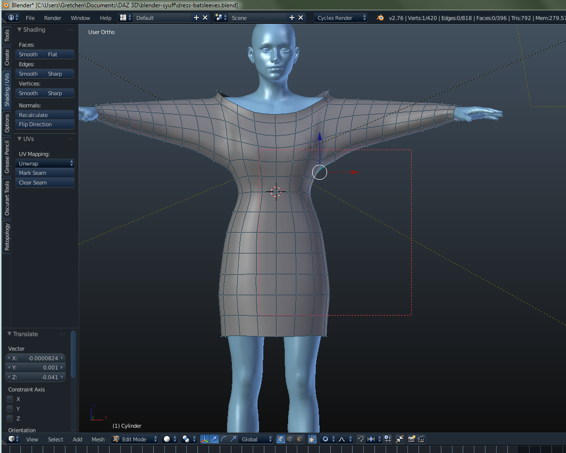 I have Blender as well as Maya and 3DMax both which I have access through a student license for my kids so anything I made with either of those two programs would have to be given away for free. I'm slowly figuring out Blender, though, and I have a resident expert (DH) who uses it. He doesn't do anything with DAZ, though, so I would have to figure out how to get my model in to Blender and then get it DAZ once finished the clothes. I have a couple of tutorials on doing that somewhere. I just have to find them on my computer.