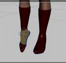 When doing boots and shoes, remember to shape them over the feet and not mimic the feet to closely (for instance, most shoes have a little room, depending on the style, in the toe box) or they will look like leather/rubber socks. The sole is generally larger, by a little or a lot on shoes/boots (athletic shoes are a completely different animal). Also, to make the material of the shoe/boot not look like it was poured on to the leg/ankle/foot, there will be compression wrinkles and wear cracks on the surface. Just a few things to keep in mind.