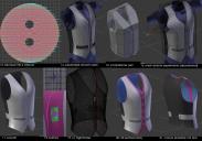 Experimented with making my own mesh over the top for deforming, but it didn't really work out due to the overlapping front parts of the vest. Created the buttons, straps, and inside layer, marked out pockets and linings, made button holes and made them fit (I know a lot of clothes don't bother with this, probably because of how impractical it all is.) Marked out all the seams and created material zones for each part for easy shader assigning. I think I'm done with the model? Or at least bored of it.