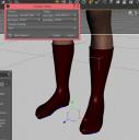 First, you can see the mesh for a draft of some boots in the Hexagon bridge. Just a couple of notes. See the sole that I attached. I created it by selecting the bottom duplicating adding thickness and using the bridge tool. You could use an extrusion or any number of other ways. I did it that way because I felt more confident selecting the resulting edge loops of the sole. I also added thickness to the boot itself, then deleted the interior of the foot (selected the outside and the used the plus tool to slide down the interior, inverted selection, and then deleted). I assigned material zones for the sole, the boot exterior, and the boot interior. Having a separate material zone for the interior is convenient because if there are problems you can apply transparency to hide the interior.