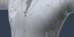 2) Bending and the underlying figure mesh - should the cloth model preserve a clean mesh in reference only to itself (clean vertical and horizontal edge flow like Ix has provided)? Or, should the model at least loosely follow the edge flow of the underlying figure? For example, the G2M has sort of a circular edge flow around the chest muscles. I think that a model that has a similar edge flow in the chest will deform more closely with the chest. However, then it is more difficult for a user to customize the cloth using a polygon select tool or similar function. That is, if the mesh has clean horizontal lines then it is relatively easy for a user to create their own material zone, apply tanparency, and create their own cropped version of the model.