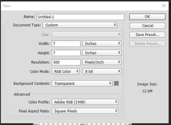 In the size area, lets say you want something that's 7 inches by 7 inches but you don't know what the pixel conversion will be.