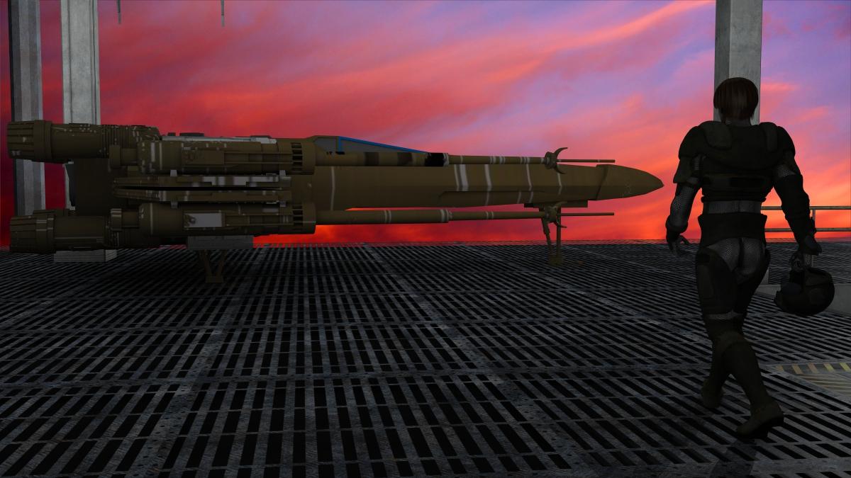 I also put a pilot inside the cockpit...a DAZ model...then I decided why not try a whole DAZ scene. So I worked to bring the x-wing model into DAZ and re-texture it. I'm not really happy with the quality of the textures I had to work with. It's an ugly texturing job. All I have to work with is the diffuse textures (no bump, specular, displacement or anything else), and there's about 2 dozen of them! (edit: there's 61 different texture images!) Think it was easy figuring out what goes where?! Shees!
