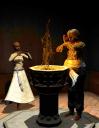 Hi, try working in your image editor with levels and saturation. Note how the saturation enhances the glow of liquid so that it fills more of the room. Working with the mid-range in levels brought out more details to be able to see the young girl and weven the rust patterns on the door. You want your viewer to be able to see your work. :) Don't be afraid to strengthen your lights.