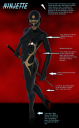 For Ninjette, I wanted a really mats heavy composition, using the reflection on her latex suit to portray the scene from her point of view, while keeping her the focus of the composition. So I want the latex really, really shiny and mirror like, but still with enough distortion to sell the reflection without looking too intentional. The katana blade also provides a chance to show more of the scene, from a different angle of view than the suit.