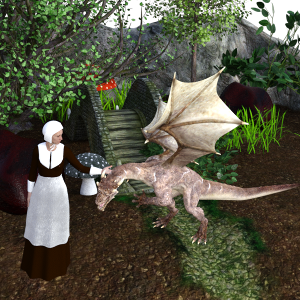 I am in the mists of Rendering my WIP I retextured the rocks and recolored them both and also retextured the mushroom to make it look more dark (DO NOT TOUCH THE MUSROOM) look. Also added a nice shader to the apron to change it up from the dull white it once was
