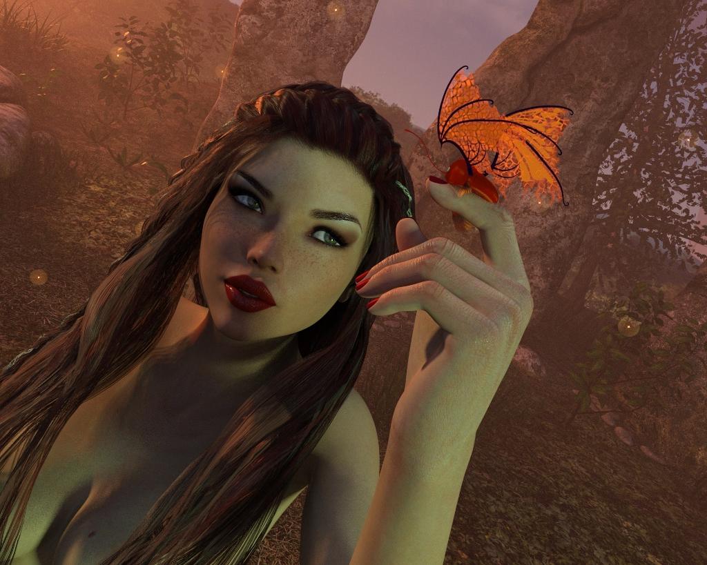 You indicated you wanted more glow on the wings of the Mystikoi. In the Emissive settings in the shader what do you have the lumens set at? Did you try changing the setting from k/m2 to k/cm2 (this may not be exactly right...I am going by memory...I am not at my rendering computer ) If you leave the setting at the default you have to increase the lumen intensity setting to a very high number...think 5 or 6 zeros. If you change it to the cm2 setting you can use smaller numbers in the lumen light intesity setting. You have 2 options for adjusting the light colour. You can change the temperature or the diffuse colour. I tend to change one or the other but you can experiment with them to get the exact look you want. I think a nice glow from the wings will be great in this image.