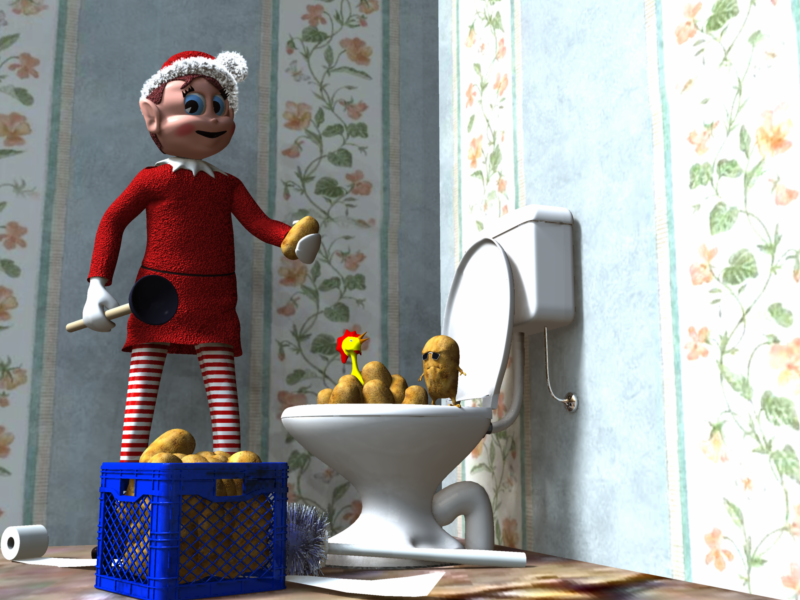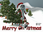 we have that naughty elf you can buy from the $ shop ( actual image of elf in image ) and he comes out each christmas to be his mischevious self ... so I modelled him from my body and boned and morphed him and stuck him in the zip file ( with a face texture ) so he can plunder and cause mayhem in your Carrara Runtime.... devil
