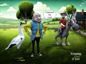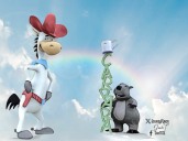 The cricket meme-guy and a Mountie on his horse modelled from cubes