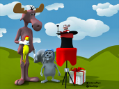 today I boned and morphed Bullwinkle and Rocky and modelled a magicians table mostly from cylinders smiley