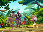 I like the cartoon jungle background. Very colorful.