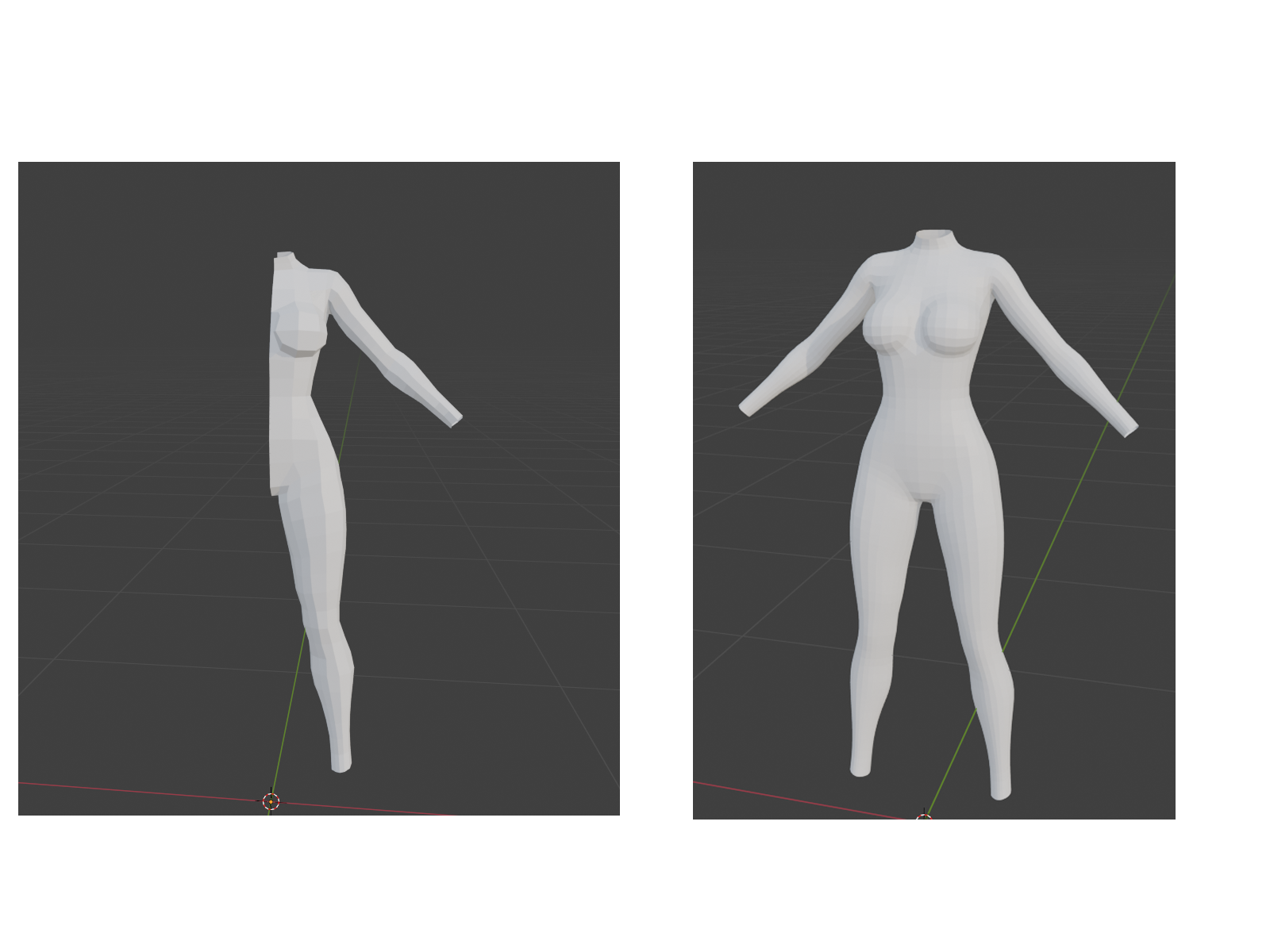 I have started on Moxie 4 and Brash 5.  Modeling low res in Blender.  Here is the current WIP for Moxie (a) raw, low res, with no modifiers, and (b) with modifiers for mirror and subdivision surfaces.