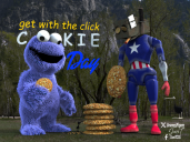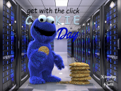 from the cube came the cookie with crumbs, which then from the cookie commeth the cookie monster with Carrara text and hair
