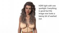 * HDRI light, an emissive plain in the ceiling, or environmental lights do make shadows on the model's face soft, but at the same time, the model gets a kind of washed-up vibe.
