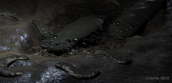 The creatures in the mud are very nice? Well, in a slippery sort of way. OK I decided to try and combine my grass method Bryce grass terrains - a 25 minute tutorial by David Brinnen with TA optimised radial gel lights Bryce 20 minute scene lighting project - the Xyzrgb Stanford Dragon - a tutorial by David Brinnen I knew it would be punishing in terms of render time. 28 hours later...