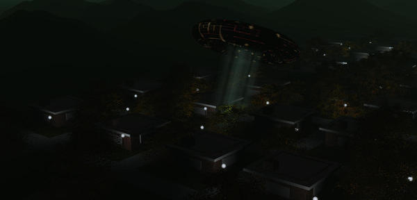 Very nice with the light rays from the UFO. A bit dark on the monitor I'm looking at your artwork.