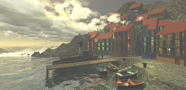 I'm new on this forum (but not so new to bryce). Here's my latest render : a little harbor. Any comments are welcome. (And, by the way, please excuse me if I make grammar mistakes, since english isn't my native language)