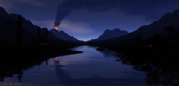 This render is inspired by a fantastic work from Horo...Showing a awesome night scene of a lake