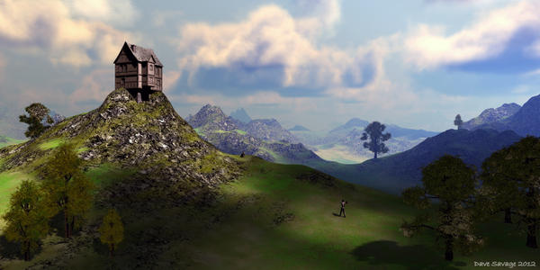 That 'house on the mountain' scene is really neat! The atmosphere and textures have a good taste. There are two things that imho might be changed: