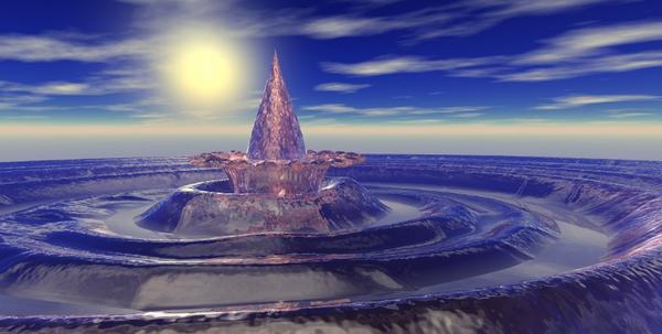 To silverdoli. I like the abstact. colors contrast very good. To Gussnemo your segestion of making the the whilpool a crater is in the works. I also tried to make a Galaxy out of it. But it a little difficult I have a slow computer a Phenom 2x4, which I will upgrade soon. I also saw like Horo "How do you get in". But like a couple of building here at the Grand Canyon you must enter through the back? I,m posting another render. The silver planet is just there tell I put in Zeus or something like it. The pillars are from Rendosity I,ll grab whatever free. But I did purchase Bryce 7 content bundle today.
