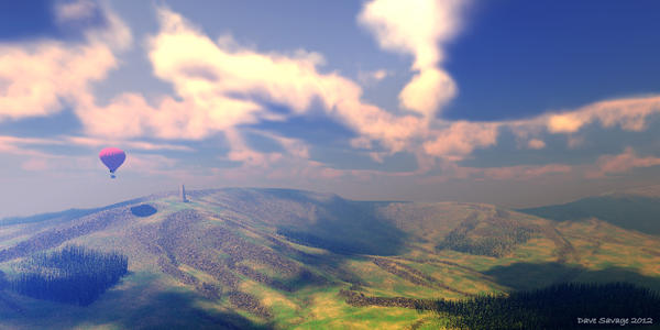 @Dave: Those scenes are very nice. I believe the first is better as it doesn't have the amount of haze as in the second. I don't think the second scene is out of possibility because I've seen areas that way during grass fires. The balloon is a nice touch. Had you given thought to adding it to the first scene?