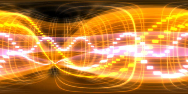 Here, for a bit of fun I, since I've been doing some tests on volumetric light capture. I took a little sinwave pattern from genetica, spherically mapped it around a couple of light sources and put those inside a hollow volumetric fog. I then spherically mapped the inside of this fog.