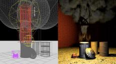 I still had to cheat with the smoke though as when I placed it in the correct place in the 3D environment, where the base shapes overlapped, it affected the volumetric material and you could see a definite line. I did try grouping the components and making them all positives but couldn't find a way around it. In the end I had to place the smoke infront of and behind the fire instead of directly over it and non of the plumes of smoke could overlap each other or the fire.