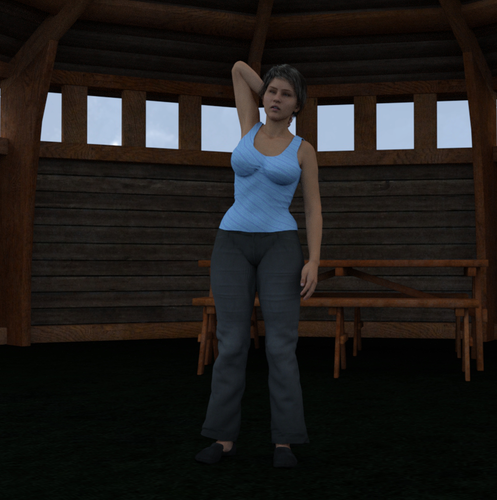 G2F Olympia, modified to look like a little like me, with some clothing from PoserWorld. :)