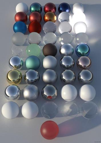 Row 3: Fabric - Silk - Blue / Fabric - Velvet - Red / Glass - Solid - Clear - Dispersive (rainbow) / Glass - Solid - Clear / Glass - Solid - Frosted - Clear