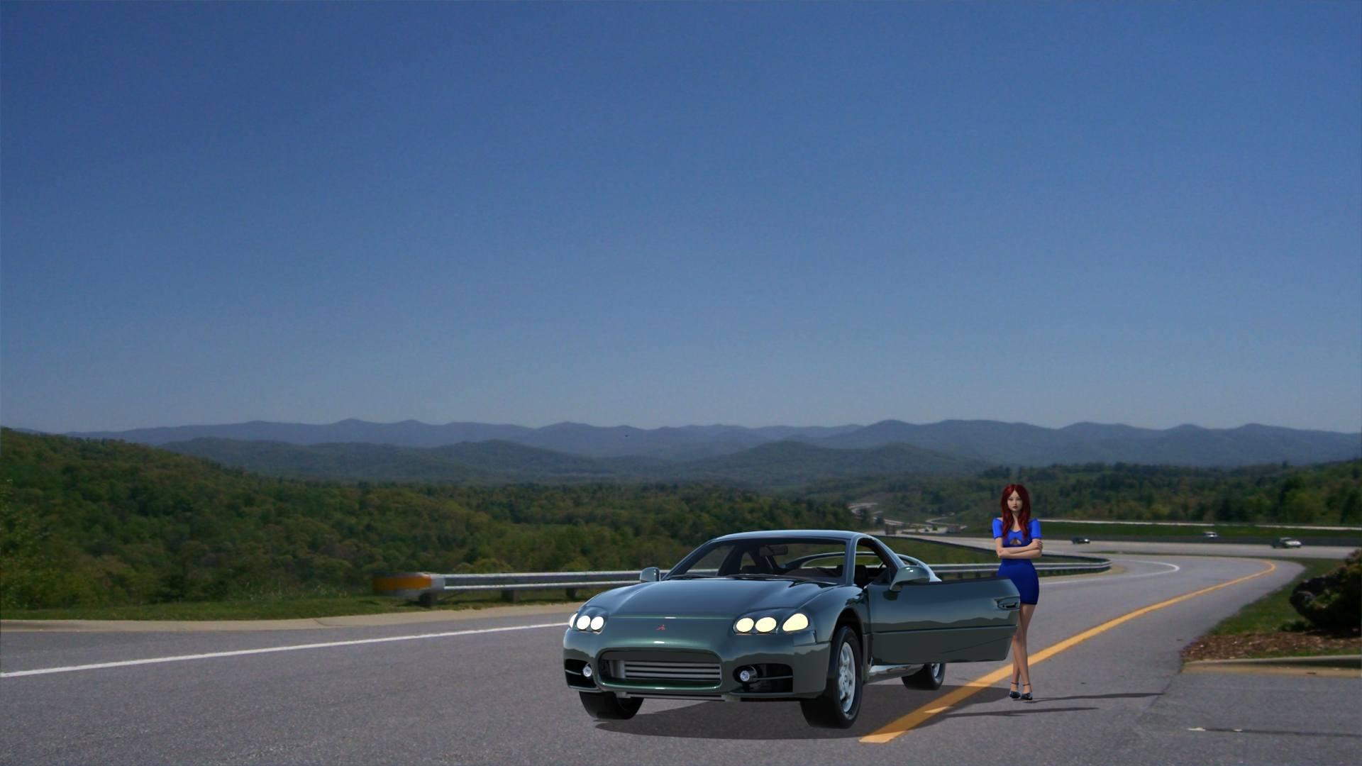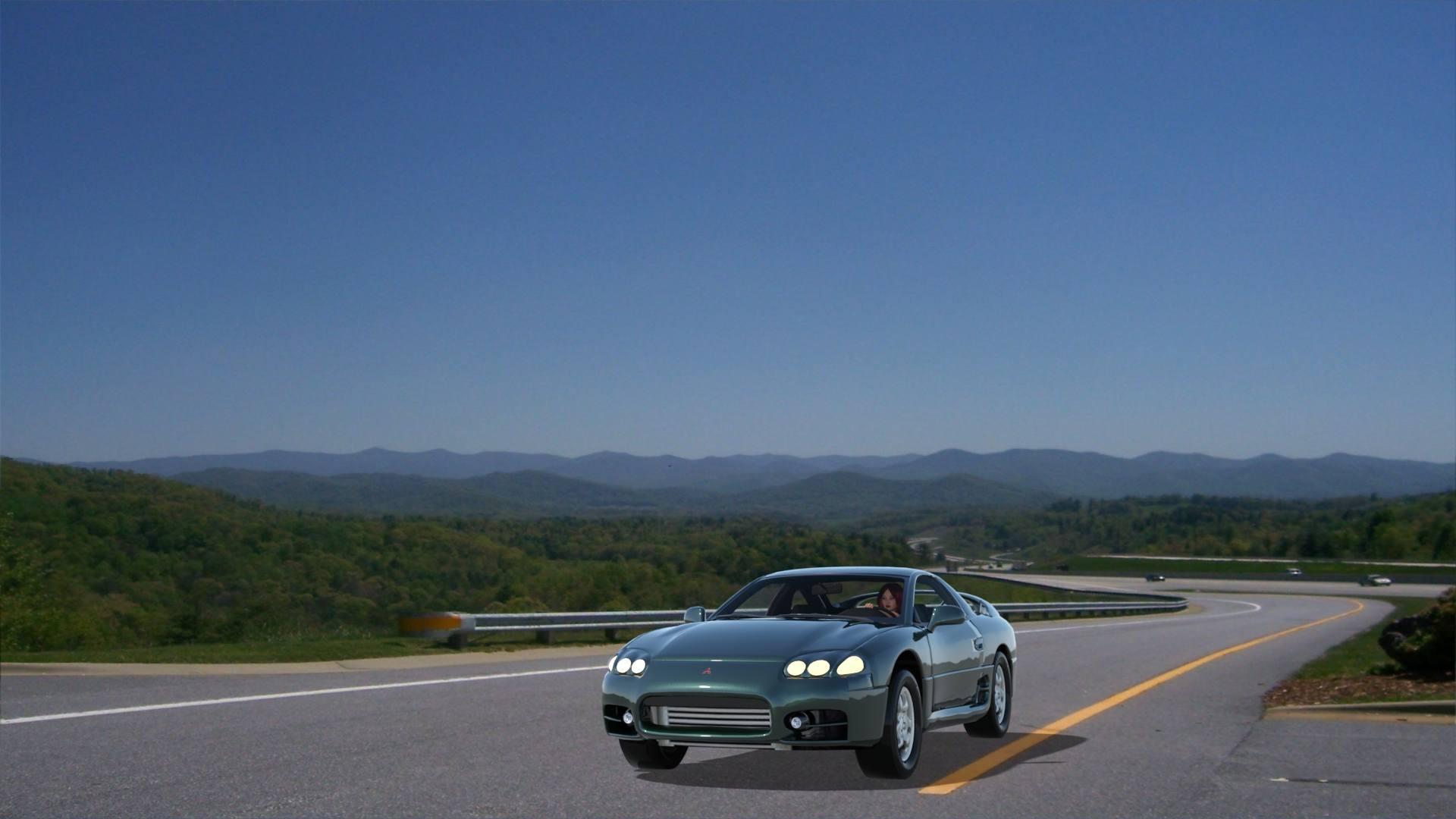 I was playing around with some depth of field render settings in Iray today. I was using my Own 3000gt model, and a picture I took on exit 19 on I-81 in NE Tennssee a few weeks back. with my powershot camera
