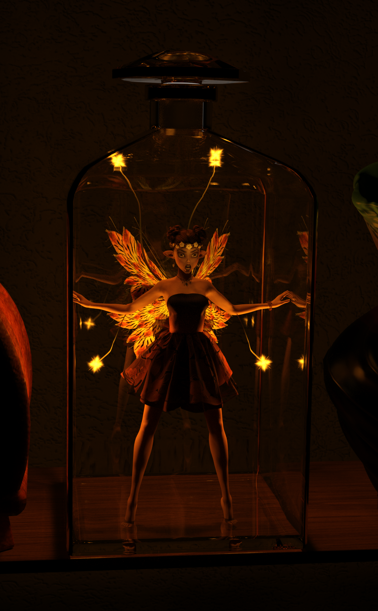Nothing like a cute fairy in a jar for your very own! ;) Very cool render!