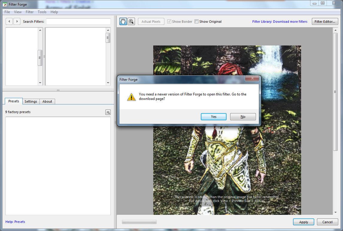 The filter you were trying to download probably has some feature only available in a later version of Filter Forge. When you are looking at filters on the Filter Forge site, the number in the upper left of the thumbnail tells you what the minimum version needed for that filter is.