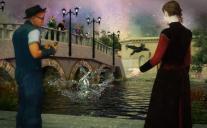 Jeff challenged the elves, who liked to brag about their magic birds, to a triatholon between one of their prize cormorants and his shiny new robospider. The spider performed well until the swimming challenge...