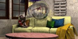 Here is a second one. The interior is part of the Rustic Living Room set. The reading boy is a Genesis with some simple clothing. The book is HLA book. The dragon, castle and knight are freebies from Free3D. I changed all textures to procedural Bryce textures, except those for the boy and his hair. For these I reduced the size of the pictural textures to ensure that Bryce would not crash (often) on me. I also deleted quite some of the room interior for the same reason.