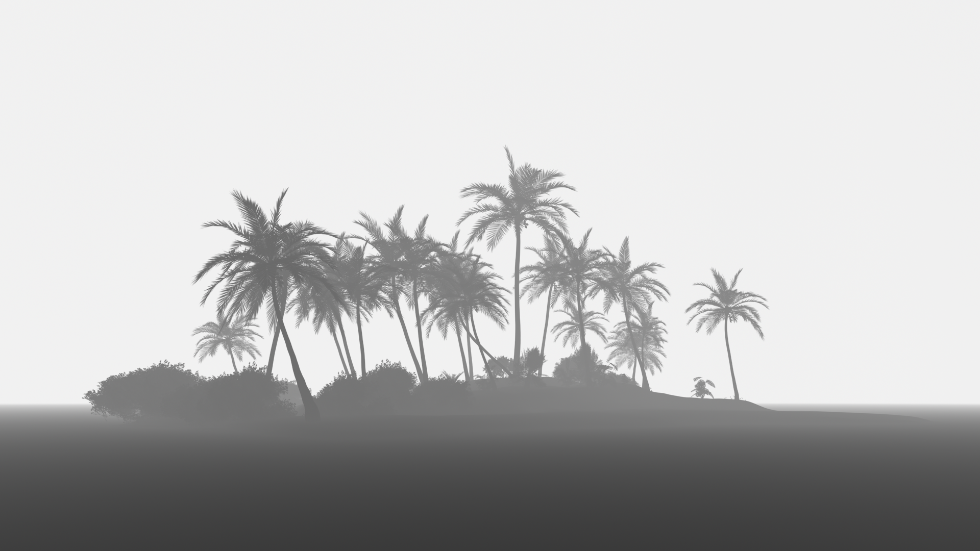 So here's a scene with only transmapped vegetation, along with a couple of simple fog depthmaps of various visibility. The base render took a long time (couple of hours) as I knew it would, but the depth passes render in 1min 36sec. I also rendered out at UHD resolution, which took 5min45sec to complete.