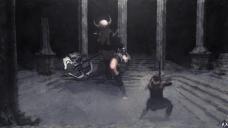 I had this idea of composition in my mind , a sort of "high ground" situation. But I didn't want the weak to be surpassed by the barbarian in full armor mode. Well, I made him win thanks to one of his firing swords. He has the high ground.
