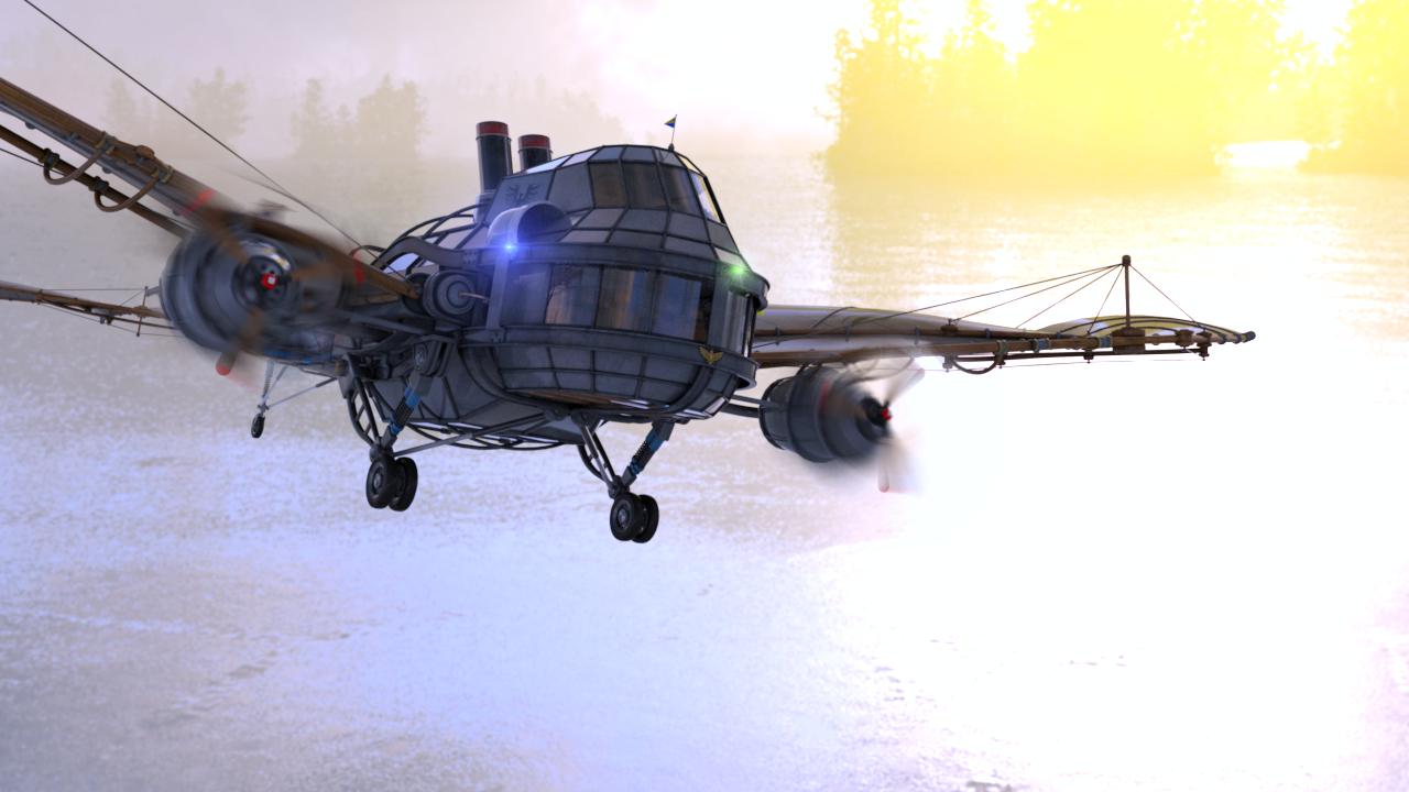 The image above has had propeller blur and lens flares added in Howler so it didn't look so static. Still working on how to get materials to glow in DS. I've been using the ambient channel to try, but it doesn't really Glow like I can with Carrara.