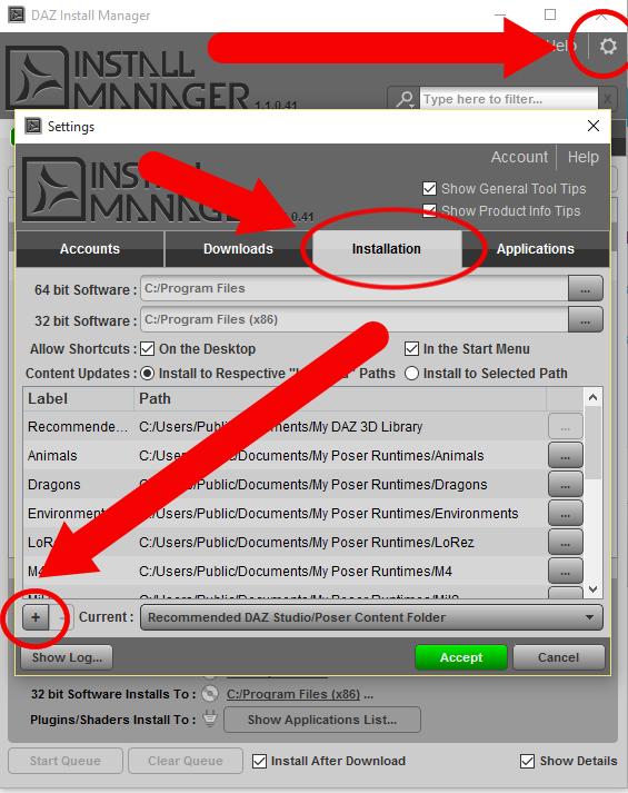 In this image, I'm showing you where to go in DIM to add the locations where you'd like you content to go, which will create selections when you download/install your content.