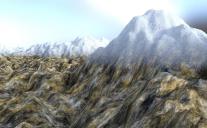 FInd/make some good texture maps for rock and snow (sharp chunky vs. smooth bumpy), bump and Normal, and some good color. Adjust tiling on individual maps to taste.