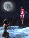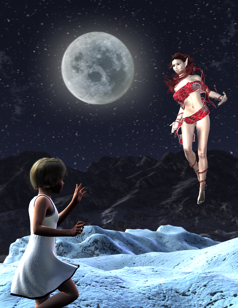 I liked the position of the moon, and the lighting of the elf in the first image. Dress looks better in the second. (Actually, I like the dress in the first image, too, it's just been too much associated with the original promo image for the girl. :) )